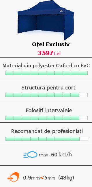 Indiferent dacă vindeți haine, pantofi sau alte produse, aceste corturi vă vor permite să afișați fiecare produs astfel încât să fie vizibil și accesibil clienților. Versatilitatea lor nu se termină doar cu construcția rapidă pliabilă. Aceste corturi foarfece sunt concepute pentru a rezista la condiții meteorologice dure, făcându-le potrivite pentru utilizare pe tot parcursul anului. Sunt echipate cu materiale impermeabile și cusături duble, care asigură o protecție fiabilă împotriva ploii și vântului.
